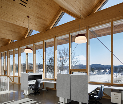 La Pêche (Quebec, Canada) has constructed a new townhall that was designed for the future. The dramatic two-story structure is comprised of solid wood, both inside and out, and presents an impressive facade on the main street of the community. And it incorporates the latest innovations in sustainable construction. With its forthcoming Passivhaus certification - an international standard that guarantees optimal energy efficiency – it will be the first Passivhaus-certified institutional building in the province of Quebec.